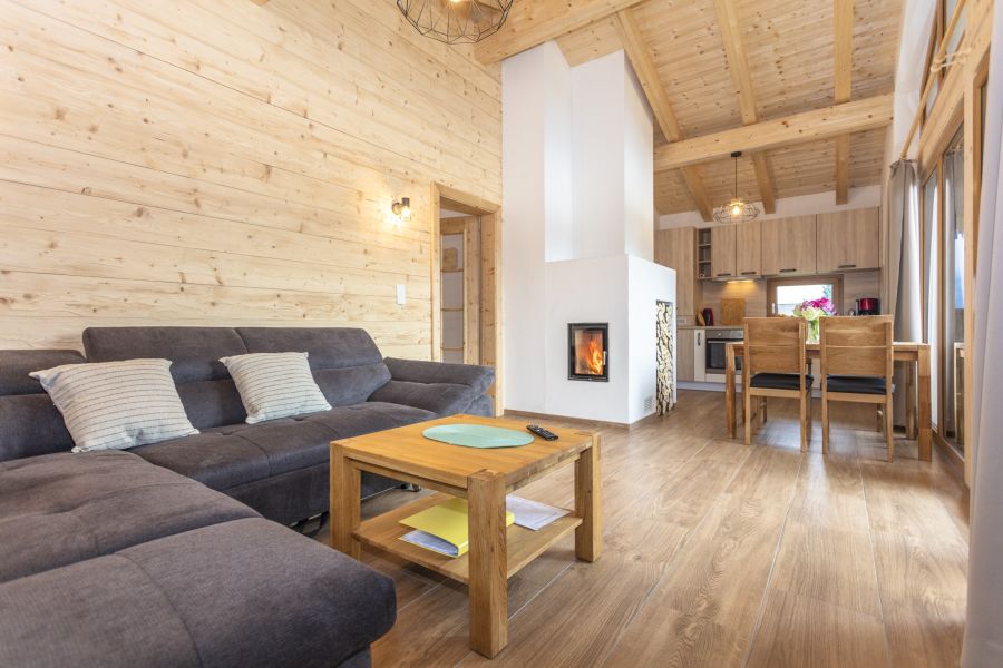 Die Kaminöfen können Sie selbst einheizen. Sie spenden wohlige Wärme und das offene Feuer schafft ein besonderes Wohlbefinden. Entweder Sie mieten das ganze Chalet oder die beiden Ferienwohnungen getrennt. Wenn Sie beide Ferienwohnungen mieten, könnte das Wohnzimmer im OG als 5. bzw. 6. Schlafzimmer genutzt werden.